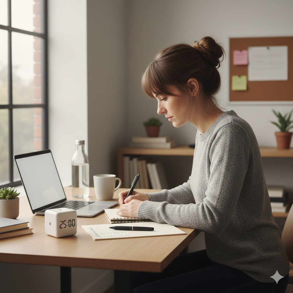- Timers (Pomodoro or 10–15 minute sprints)